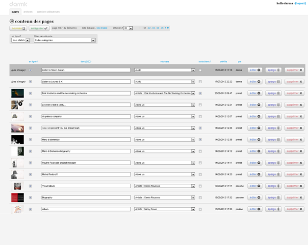 prestation : conception interface, front-office + back-office, intégration // direction technique et développement.
